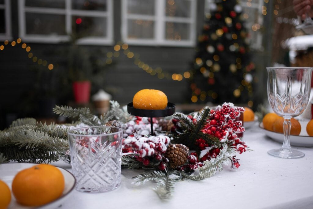Finally, set the sensory tone. Layer the light: candles, lamps, and strings of soft illumination instead of one bright overhead source. Bring in natural elements, a bowl of oranges, a branch of pine, a simple garland, to ground the senses in festive season. Scents like wood, citrus, or spice create an instant feeling of warmth and belonging.
