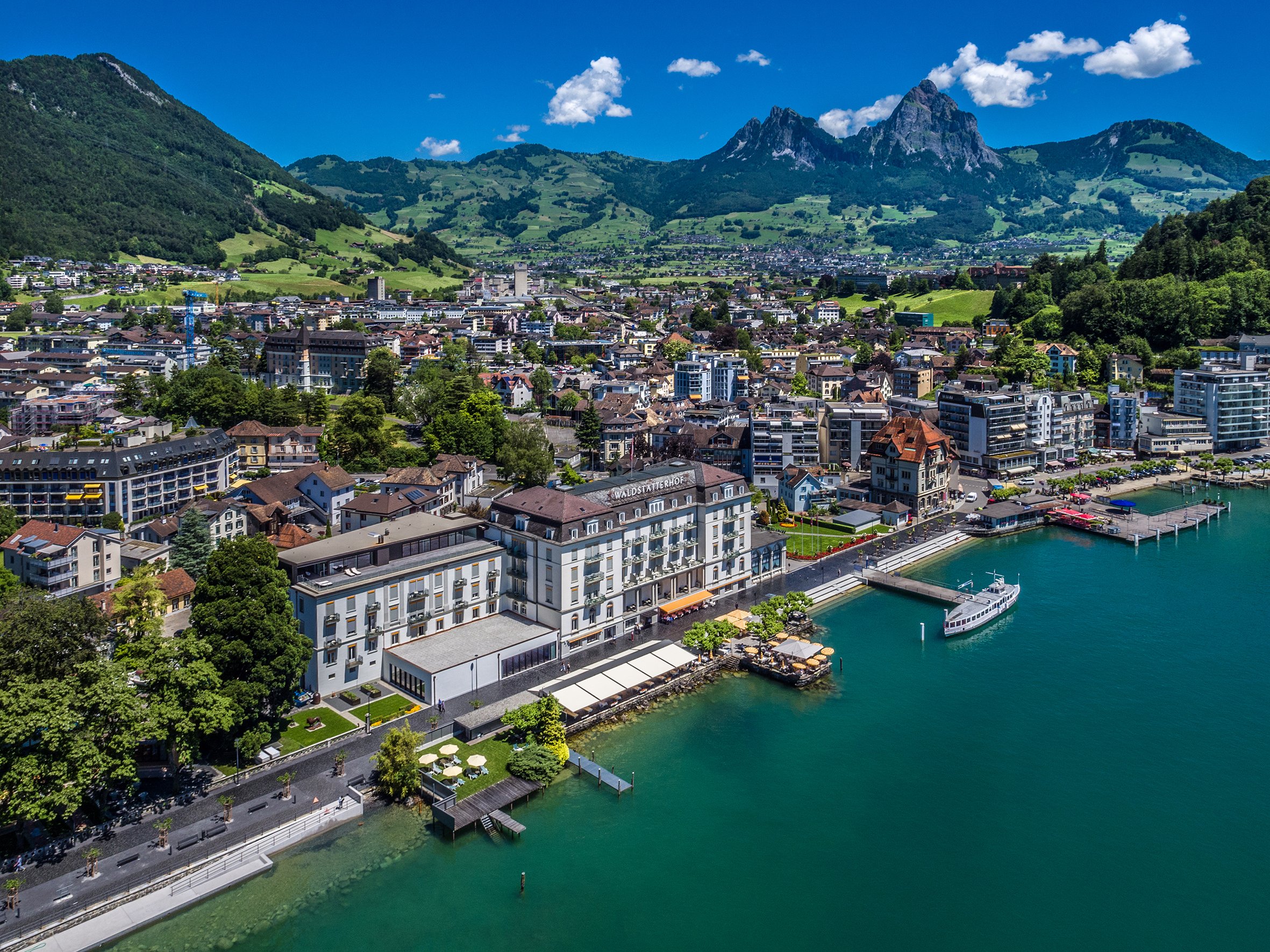 Brunnen is where legends are made – quite literally! Brunnen is a picturesque waterside village on Lake Lucerne, known for its stunning mountain views. A mere 10 minutes away you find the Rütliwiese, famed as the birthplace of the Swiss Confederation – an unmissable stop for history buffs. Brunnen also offers easy access to scenic boat rides, hiking trails on nearby Seelisberg, and cultural landmarks tied to the founding of Switzerland.