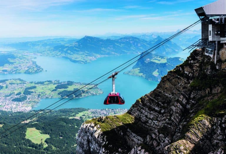 The starting point in the heart of Central Switzerland is in Lucerne. On Lake Lucerne, you enjoy the boat ride and a view of the surrounding mountains. The amazement continues. In Alpnachstad, you will board the steepest cogwheel railway in the world to reach the summit of 2,132 possibilities.